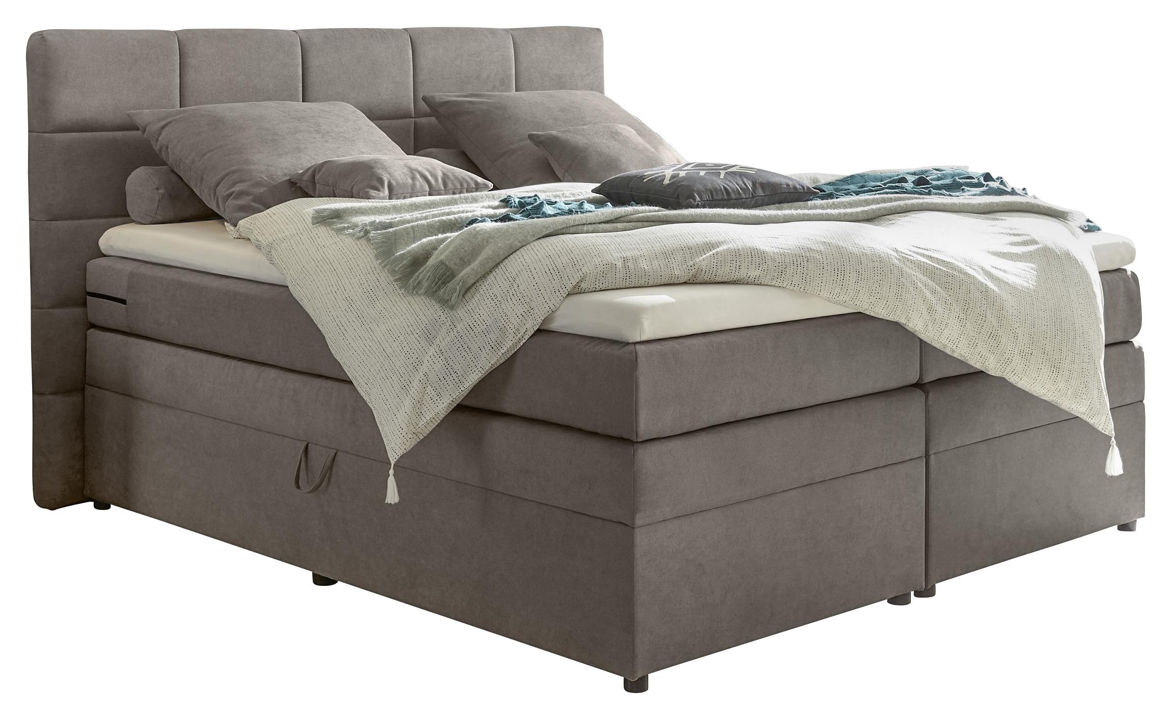 Belma Boxspringbett Mit Stauraum Im Kopfteil 180x200 Cm Grau